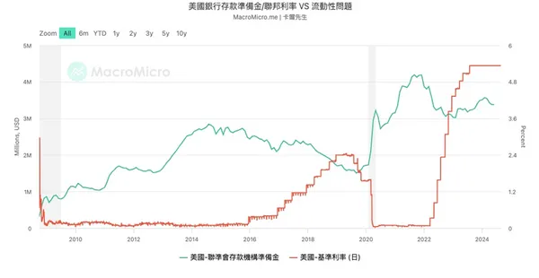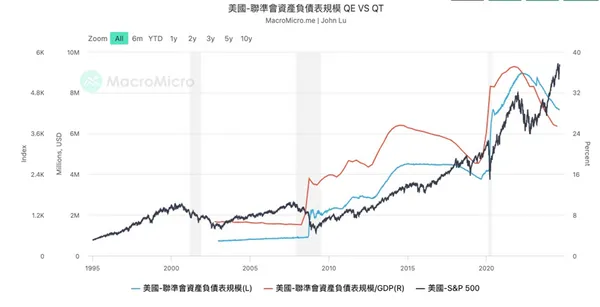 自從2008年金融風暴後,美聯儲快速将利率降低到0,但是仍然沒有能夠讓經濟出現複蘇的現象,那時貨幣政策已經失效,因爲無法繼續降息,於是為了向市場進一步注入流動性,美聯儲創建了量化寬松QE工具,通過擴張美聯儲的資産負債表的方式向市場注入流動性,同時增加銀行系統的準備金規模。