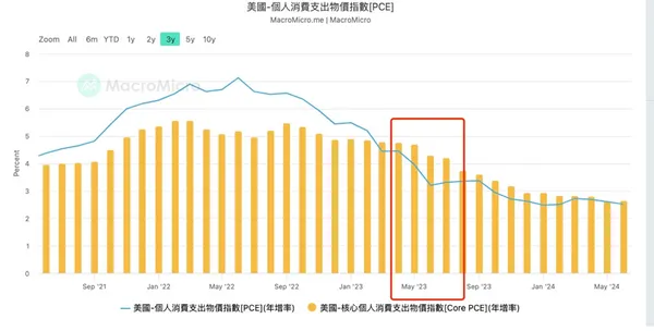 - 最後是數據統計上的問題,我們知道為了避免季節性因素對數據造成干擾,CPI與PCE數據通常會用年增率,也就是同比數據來反應真實情況,而到今年5月開始,2023年的高基期因素將被耗盡。屆時相關數據的表現將容易收到增長的影響。