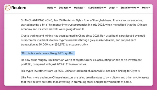 路透社報導了用戶如何使用小型農村商業銀行通過灰色市場交易商購買加密貨幣,並將每筆交易的上限設定為7,000美元以逃避審查。