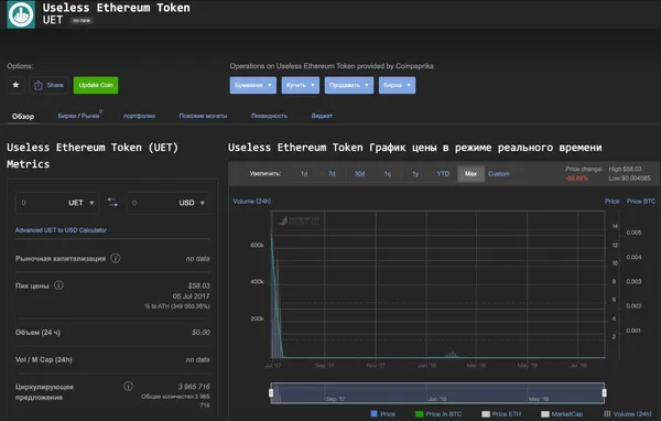 Useless Ethereum Token ($UET)如其名,毫無用處。$UET 最初是作為一個笑話創建的。項目網站表示,它沒有任何預定用途,也不打算增值。根據 $UET 的匿名創辦人所說,這種透明度反而吸引了投資人,讓項目在 ICO 中籌集了 30 萬美元。