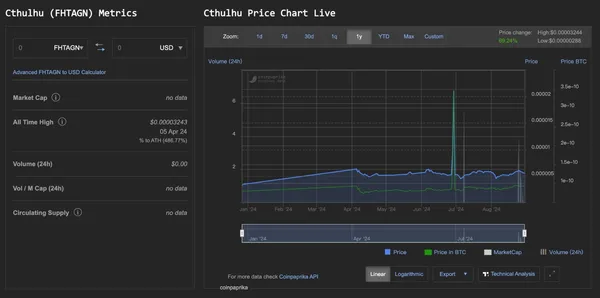 目前,根據少數幾個追蹤網站的數據,Cthulu 代幣沒有可評估的市值,每個代幣的估值僅為 0.000032 美元。