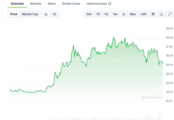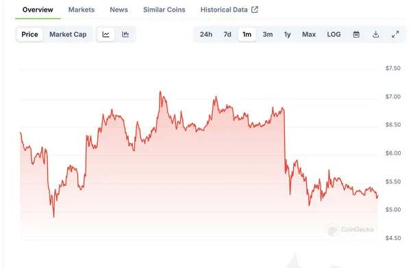 在短短三天內,TON 從 6.75 美元跌至 5.11 美元。