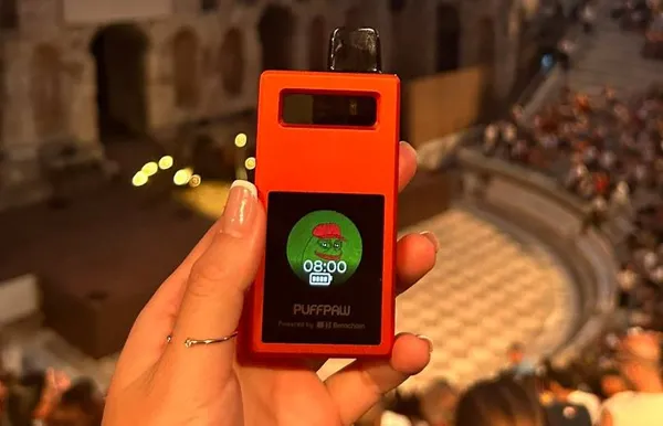 戒菸 to earn 聽起來略帶喜感,但 puffpaw 是有自己的 DePIN 設備的 ,透過在智慧電子菸上安裝感測器和區塊鏈介面,記錄用戶的吸菸行為,達到監控和激勵的效果。