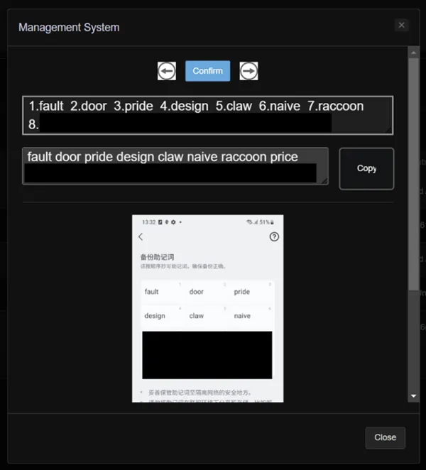 駭客的主要目的是獲取加密貨幣錢包的助記詞。為此,攻擊者利用光學字元識別技術(OCR),將圖片中的文字轉換為數據,並在管理面板中進行整理與操作。