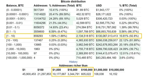 更令人驚喜的是,在全球 82 億人中,你是那 605,022 名擁有超過 $100,000 比特幣的人之一。這實際上是全球的 0.007%。聽起來瘋狂,但這些數據確鑿無誤。
