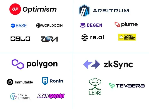 儘管這波舉措是由 optimistic rollup 通過推出 OP Stack 和 Arbitrum Orbit 引領的,但其他成熟的 L2,包括 Polygon (Polygon CDK)、ZK Sync (ZK Stack) 和 Starkware (Madara Stack),也透過提供或宣布開源其專有技術來推動大規模採用。