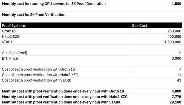 運行 optimistic rollups 的月訂閱費用通常在 3,000 到 4,000 美元之間,而運行 ZK rollups 由於生成 ZK 證明所需的密集計算和極高的證明驗證成本,費用可能翻倍至 9,500 到 14,000 美元(詳細資訊請參見圖 6)。