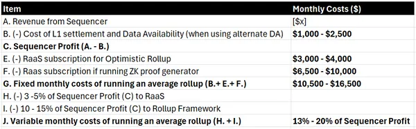 需要注意的是,由於行業的動態特性和特別是在 ZK 方面的團隊努力,RaaS 提供商的訂閱費用可能會進一步降低。