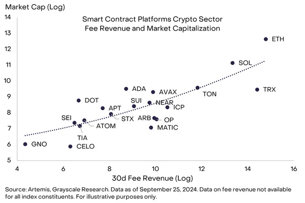 隨著公共區塊鏈技術的不斷發展,Grayscale Research 預計整個智慧合約平台加密行業將在用戶、交易和費用方面實現增長,這可能在一定程度上惠及該類別中的所有資產。