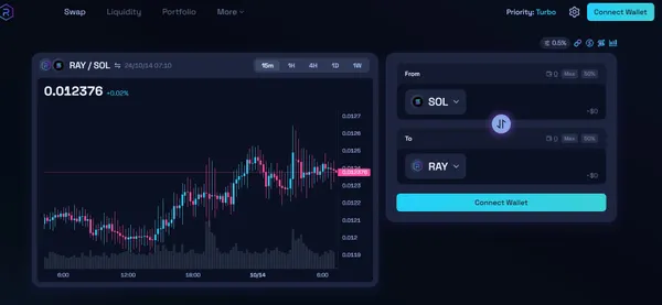 完成帳號的建立後,用戶可以打開去中心化交易所Raydium或Jupiter,並使用Phantom錢包連接交易平台。