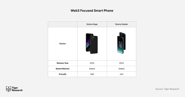 起初,大多數嘗試僅限於一次性促銷活動,缺乏實質性差異化。例如,Samsung 與 WeMade Tree(現已與 WeMade 合併)和 GroundX(前 Klaytn 開發者)合作,推出了一系列 Web3 智慧型手機,這些手機預裝了各主網的 dApp。但除了預裝基本的錢包應用和提供加密貨幣外,並無顯著特色。