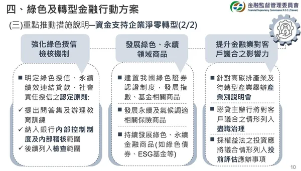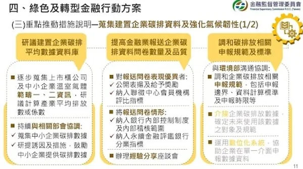 其中的12項關鍵策略,綠色金融也被納入,如金管會提出的綠色金融行動方案,從 1.0、2.0、3.0 到近期公布的綠色及轉型金融行動方案,都指出將透過金融市場力量,導引企業重視淨零轉型及因應氣候變遷的重要性,不少業者也正在探索透過區塊鏈高效且不可竄改的數據交換之特性,搭建未來的綠色供應鏈金融服務平台。