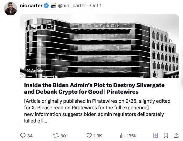 在拜登政府時期,加密行業的企業和創業者,以及金融科技公司 (Fintechs),成為主要目標。此外,有時保守派人士也會因為其政治觀點而遭遇去銀行化。
