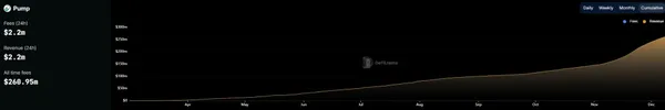 在 Solana 生態中,迷因幣發行平台 Pump.fun 的收入曲線令人震驚 - 從 2023 年 4 月上線至今,平台累計收入已突破 2.6 億美元,而且增長曲線依然保持著強勁的上升趨勢。這與 2017-2018 年 ICO 熱潮形成鮮明對比 - 性質類似的 ICO 當年在短暫繁榮後迅速消亡,為什麼迷因幣卻反而超出意料之外展現出驚人的生命力?