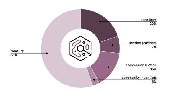此外,55% 的代幣被劃入金庫;15% 的代幣用於社區拍賣,同樣不設釋放期;剩餘的 3% 則作為社區激勵。