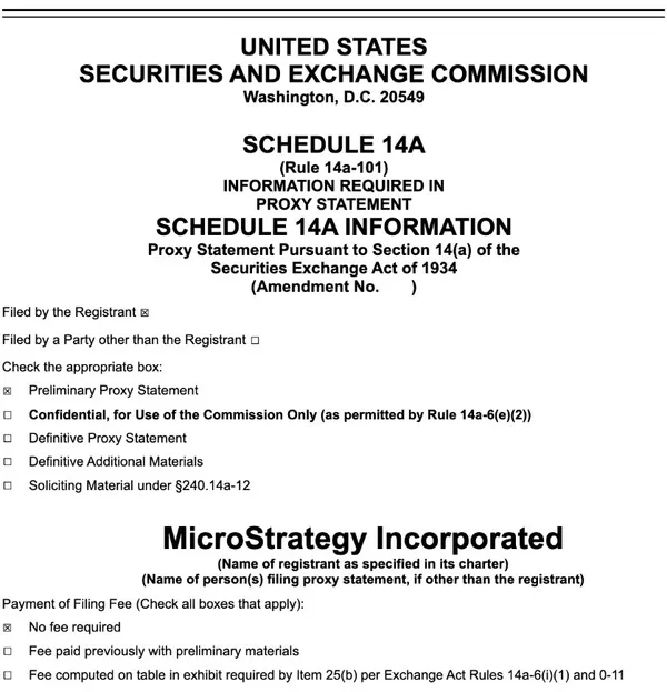 知名商業智慧軟體公司微策略(MicroStrategy)日前向美國證券交易委員會(SEC)遞交特別股東會的議案,計劃將公司可發行的普通股及優先股數量大幅提升,以便募資收購更多比特幣。根據官方提交的檔案顯示,MicroStrategy 將把 Class A 普通股從原先的 3.3 億股增至 103.3 億股,優先股由 500 萬股增至超過 10 億股,為未來增發股票或債券預留更大空間。