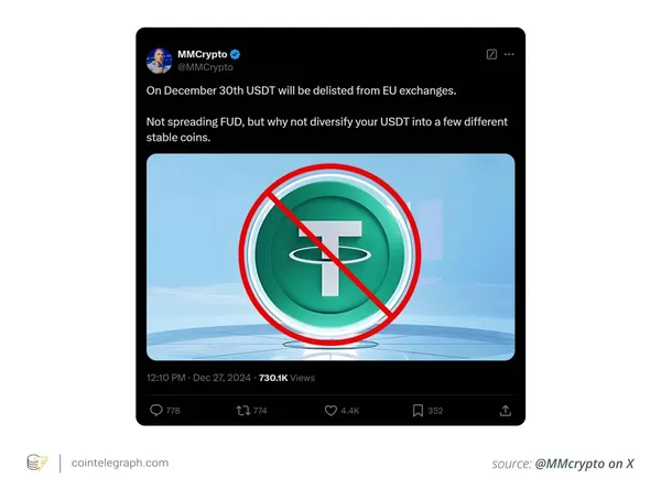有一種觀點認為,USDT 可能在 12 月 30 日之後無法繼續在歐洲範圍內交易。