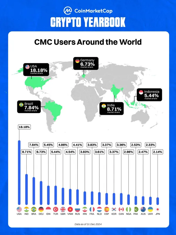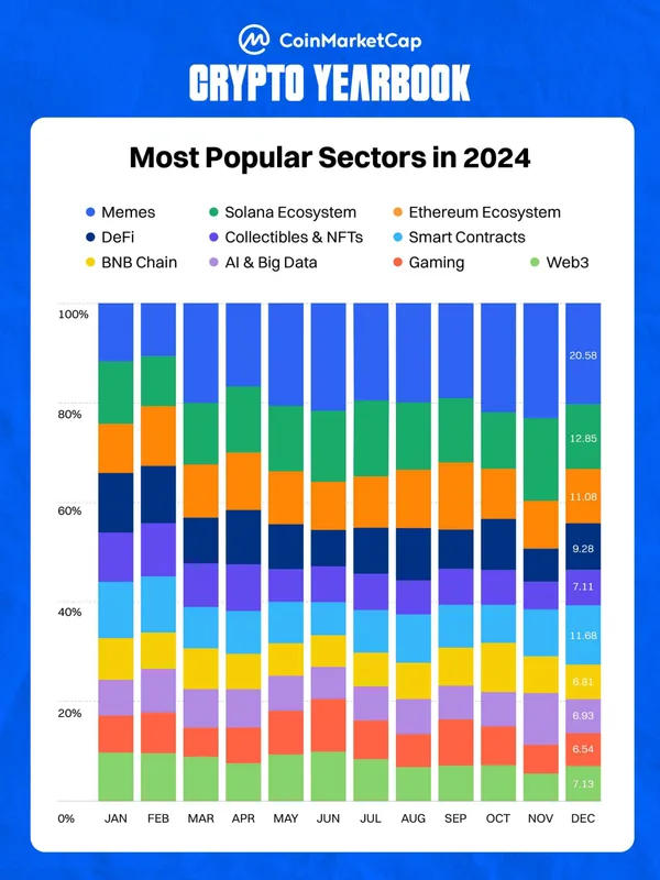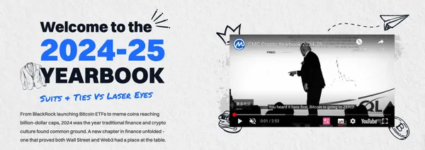 最近,CoinMarketCap 也發布了一份 2024-25 加密市場年鑒(Yearbook) ,梳理了過去 1 年的那些重大創新、震撼市場的時刻和令人難忘的里程碑,同時也對 25 年做了展望。