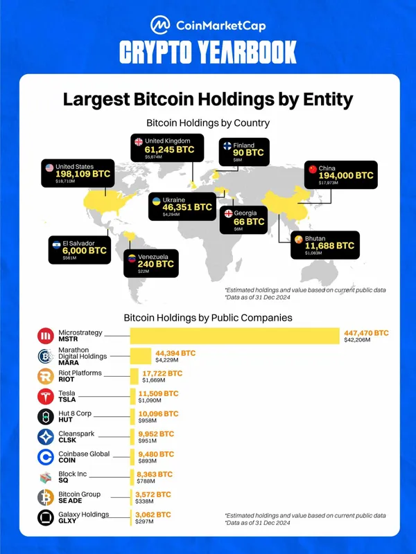 微策略帶頭,全球機構/國家們的比特幣持倉一覽