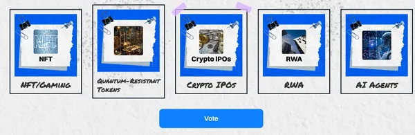 入選名單:NFT/遊戲、抗量子計算代幣、加密 IPO、RWA 和 AI 代理。