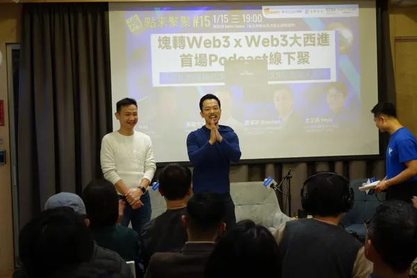 由《WEB3+》舉辦的2025首場「塊點來聚聚」活動,特別攜手交易所XREX的Podcast節目《Web3大西進》,在活動現場進行一場Live Podcast,讓聽眾直接參與錄製現場。