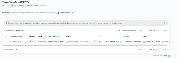自川普之後,名人發幣似乎已經成為一個新的生意經。3月2日,知名的退役足球巨星羅納爾迪尼奧也宣布在BSC鏈上推出個人的代幣$STAR10。
