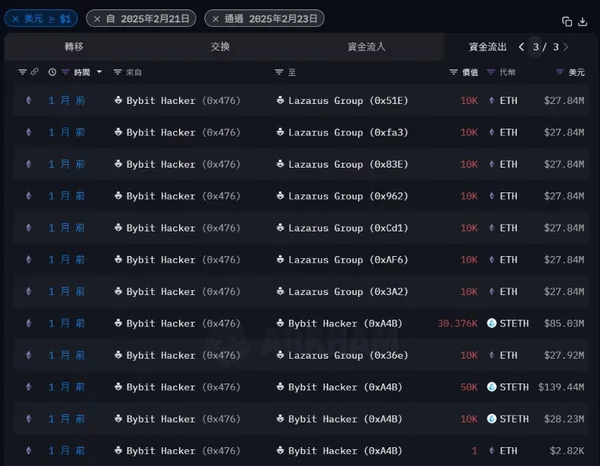 2025年2月21日,Bybit交易所發布公告,承認其平台遭到駭客攻擊,導致大量用戶資產被盜。駭客利用Bybit內部Safe錢包開發人員的電腦控制權,並植入惡意代碼,誘導交易所簽署惡意交易,將資金轉移至駭客控制的地址,並將被盜資金轉移至多個錢包洗白。