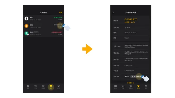 在個人的錢包交易歷史記錄中,找到那筆一直處於「等待中」或「待確認」狀態的交易。