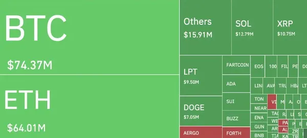 過去 12 小時,加密市場累計爆倉 2.43 億美元,其中多頭爆倉 1.92 億美元,空頭爆倉 5103 萬美元。