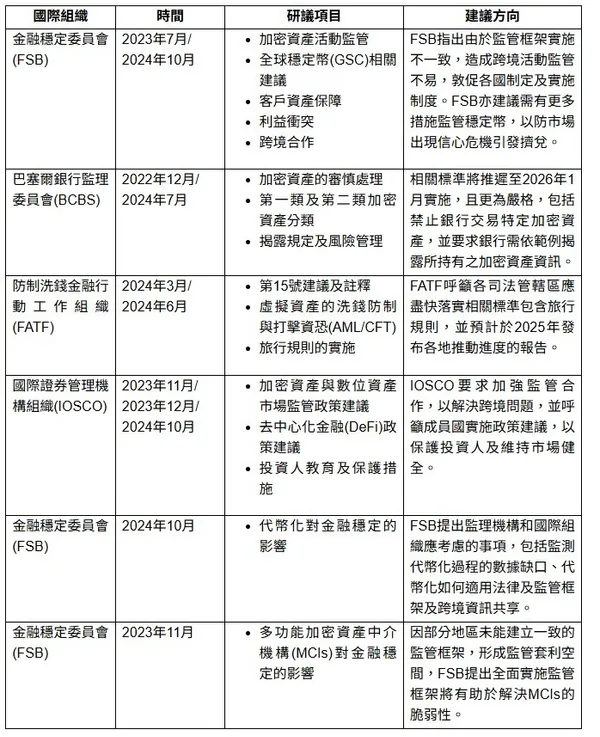 IOSCO及FATF已發布去中心化金融政策建議,而美國及歐盟等監理機構亦正在研議將證券、舞弊及洗錢防制法應用於去中心化金融,顯示未來「相同風險,相同規範」將適用於加密貨幣服務。