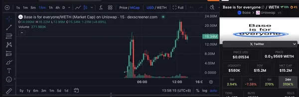 這場原本精心策劃的鏈上文化復甦實驗,卻很快失控——相關MEME幣短時暴漲後迅速崩盤,Base官方也被推上輿論風口浪尖。然而劇情並未就此落幕,隨著「Base is for everyone」翻車現場被二創後演變為流行梗,MEME幣價格意外上演V型反轉,鏈上情緒也隨之跌宕起伏。