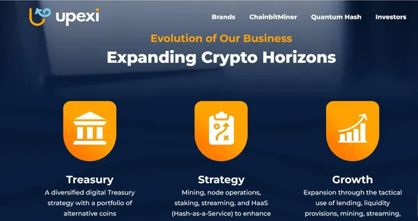 根據官網,轉型之後,Upexi有以下發展策略:首先是財務戰略:一個多元化的數字財務策略,涵蓋多種山寨幣資產組合;其次是戰略方向:通過挖礦、節點運營、質押、串流媒體服務以及 HaaS(算力即服務)等手段,提升財務收益。在增長路徑方面,將透過策略性運用借貸、流動性提供、挖礦、串流媒體服務和資本市場,實現業務擴張