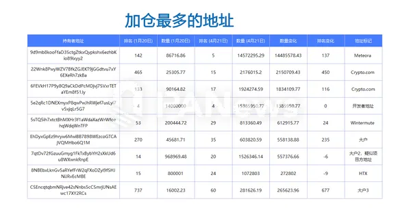 截至4月21日的數據顯示,前1000名位址持有的TRUMP代幣數量約為98.51%,較1月20日的95.83%上升了3.68%。上述的數據說明,TRUMP的代幣換手明顯,且在低谷階段似乎籌碼變得更加集中。