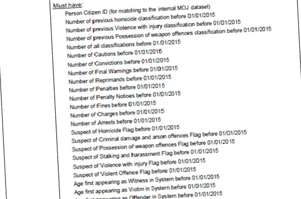 這個殺人預測系統使用英國司法部、警察國家電腦系統以及大曼徹斯特警察局的資料進行所謂的「殺人風險評估」,大曼徹斯特警察局已向該計畫提供了 10 萬至 50 萬人的個人資料。