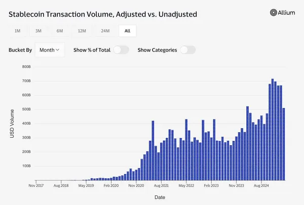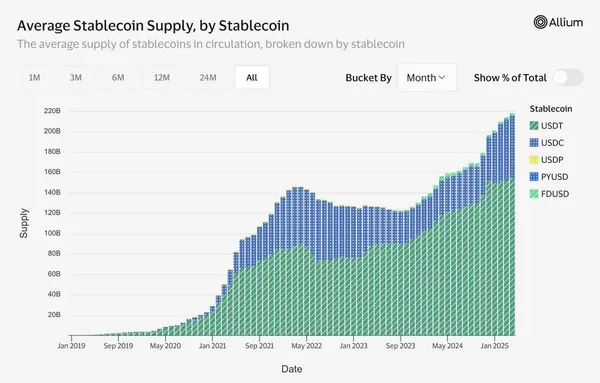 自2024年初以來,穩定幣的總供應量增加了1000億美元。