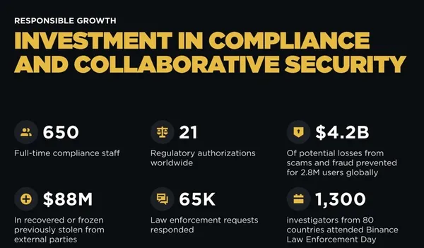 幣安持續在安全領域保持領先地位,並加倍投入其對安全與合規的承諾,斥資數億美元推動強化平台防護與建立整體產業韌性的各項措施。