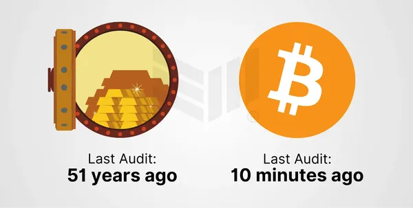 比起傳統審計依賴的第三方信任機制,比特幣實現了無需信任、公開透明的鏈上驗證。任何人都可即時獨立驗證區塊鏈數據,「不要相信,要驗證」成為比特幣的共識原則。
