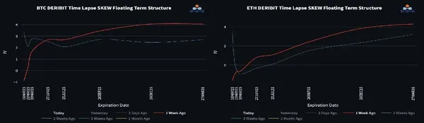 儘管以太坊出現大幅波動,短期期權合約的波動率偏斜進一步向看跌期權溢價傾斜。這表明期權市場尚未完全認可這輪上漲行情。
