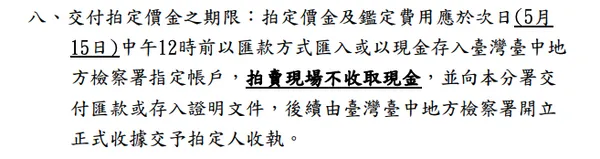 - 本分署將拍定資料提供予囑託機關臺灣臺中地方檢察署。