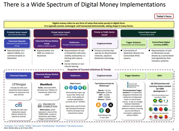 - Tokenised Deposits(代幣化存款):代表商業銀行存款責任的區塊鏈化。