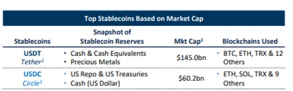 - 穩定幣:以1:1儲備資產支持的區塊鏈現金表現形式,可為計息或非計息。