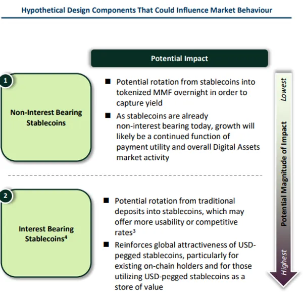 非利息型穩定幣的影響相對較小,而利息型穩定幣可能顯著改變存款格局。