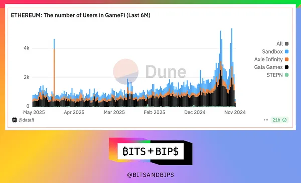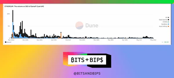 這個問題很難回答。一個可以提供線索的數據點是去中心化交易所(DEX)的 GameFi 代幣交易量。正如下圖所示,僅觀察基於以太坊的代幣,趨勢同樣消極,儘管日交易量仍達數十萬美元。其他區塊鏈如 Polygon 和 BNB 的趨勢也相同。