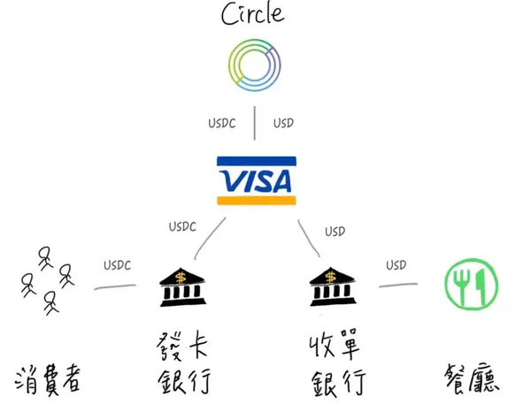 甚至對於這些卡片發行機構來說,他們向 Visa 或 MasterCard 支付的清算資金,現在也可以直接通過 USDC 來完成。也就是說,USDC 實際上已經被用作金融機構與卡網路之間的清算通道了,這本身就很有意思。
