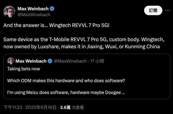 多家外媒對 T1 Phone 的「美國設計製造」宣稱提出強烈質疑。科技分析師 Max Weinbach 在 X 發文指出,T1 Phone 的規格與 T-Mobile REVVL 7 Pro 5G 高度相似,後者由中資企業立訊精密旗下的聞泰科技在中國嘉興、無錫或昆明製造,Amazon 售價僅 169 美元。