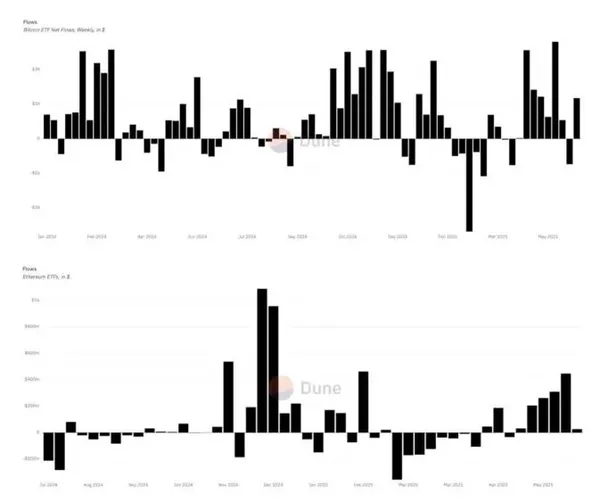 2025年6月:ETP淨流入總額450億美元(其中BTC流入420億美元,ETH流入34億美元)