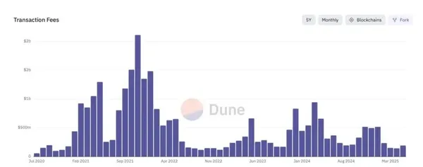 以美元計價的交易手續費總額體現了特定區塊鏈上對區塊空間的總需求,也就是實際經濟價值。