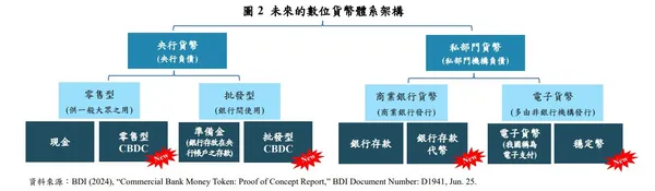 温宏駿表示,台灣目前研究的數位貨幣策略有兩條主軸,一是由央行主導、走封閉型區塊鏈(私鏈)的數位新台幣(CBDC),應用於政府補貼、客家券等場景;二是納入法規的「民間穩定幣」,由商業銀行或支付機構發行,例如「存款代幣」與「電子貨幣型穩定幣」。