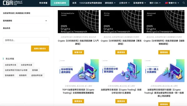 目前 CBA 亞洲區塊鏈學院的課程都還存在,經《加密城市》確認,課程價格如下: