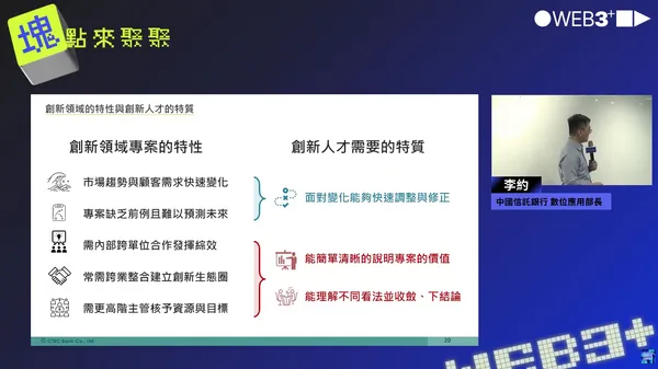 李約去年參與由區塊鏈媒體《Web3+》主辦的《塊點來聚聚》線下分享會時,曾透露中國信託早在 2016 年就開始探索與佈局區塊鏈領域,而近年則聚焦落地應用。